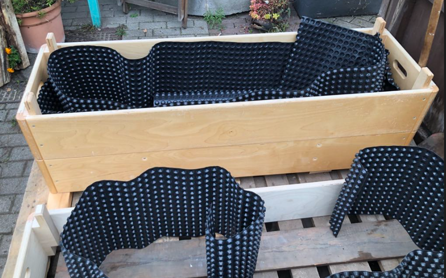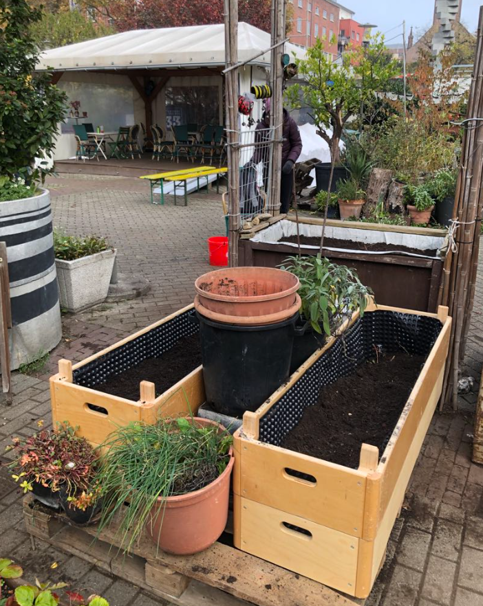 Aber Wegwerfen wäre zu einfach. Auf eine tolle Idee kamen Fr. Littek, Fr. Heni und ein paar Schüler und Schülerinnen für unser Beet im Hackgarten.