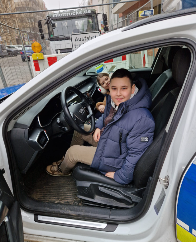 Die Kinder durften sich in einen Streifenwagen setzen und haben sich alles ganz genau angeschaut.