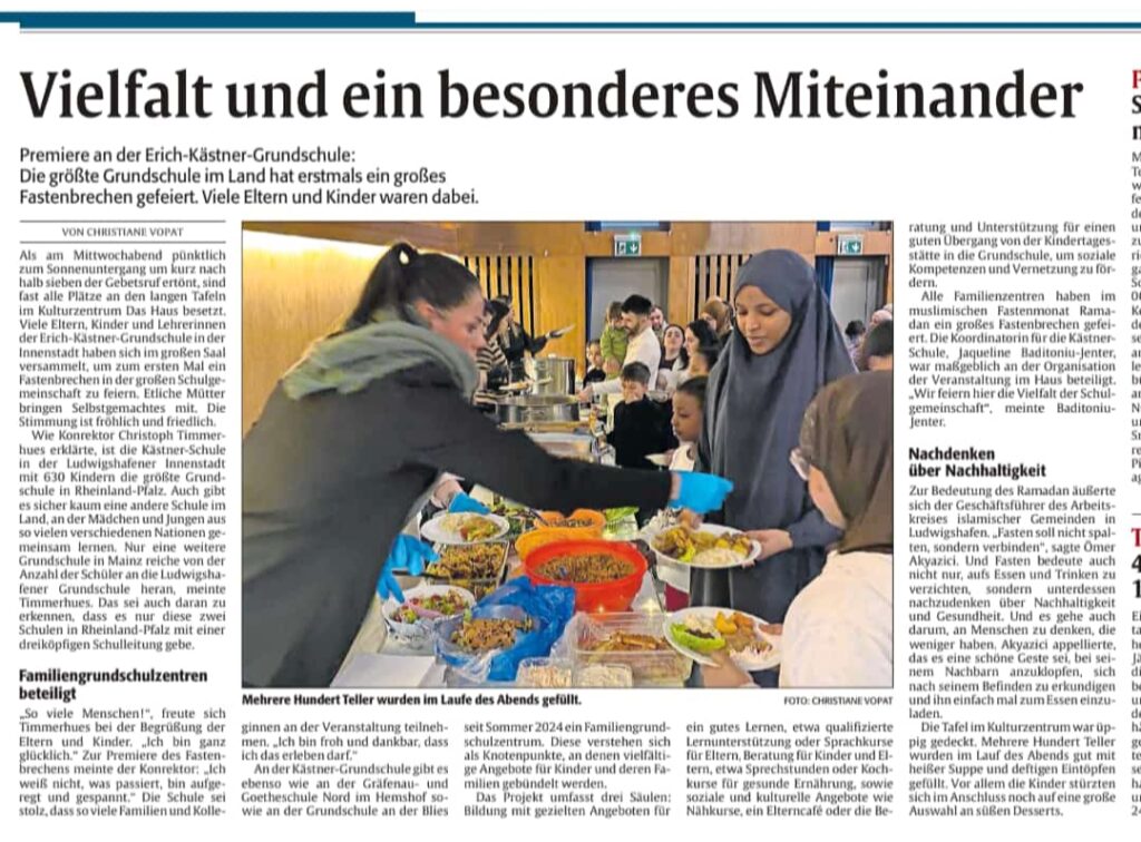 Organisiert wurde das große Treffen vom Familiengrundschulzentrum / Jaqueline Baditoniu-Jenter mit Unterstützung des SEB, 3bV, der Mevlana Moschee Ludwigshafen, der Kocatepe Moschee Ludwigshafen-Oggersheim und dem Annur-Kulturverein für Bildung und Sozialarbeit e.V.
