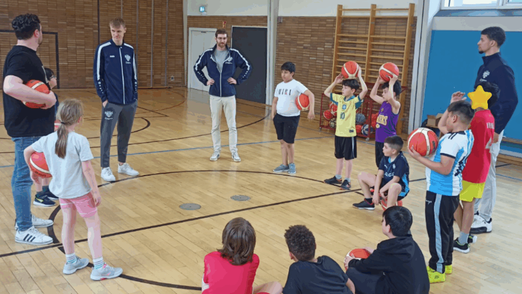 Mit viel Motivation und Schweiß wurde eine Stunde lang gedribbelt, gepasst und der Korb ins Visier genommen. 3 Punkte für Schule & Verein!